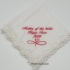 Zakdoek in de kleur ivoor/wit, kanten bloemrand is 2 cm breed.