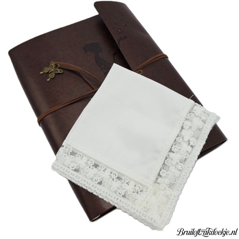 Luxe bruidszakdoek in de kleur ivoor/wit, het kanten bloemen randje is 3.8 cm breed.
