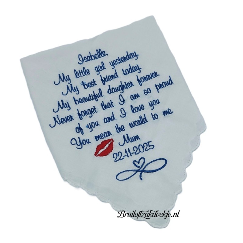 P.S. U kunt de regelgeving niet aangeven. Deze wordt automatisch passend gemaakt in de punt van de zakdoek.