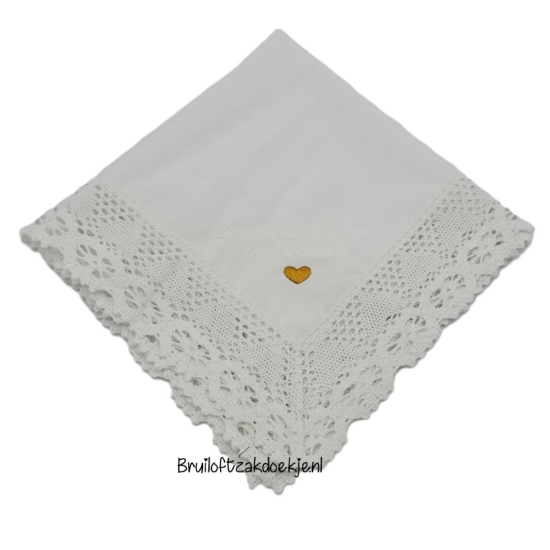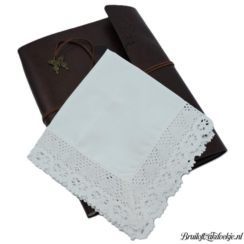 Deze luxe bruidszakdoek is ongeveer 36 x 36 cm met kant.
