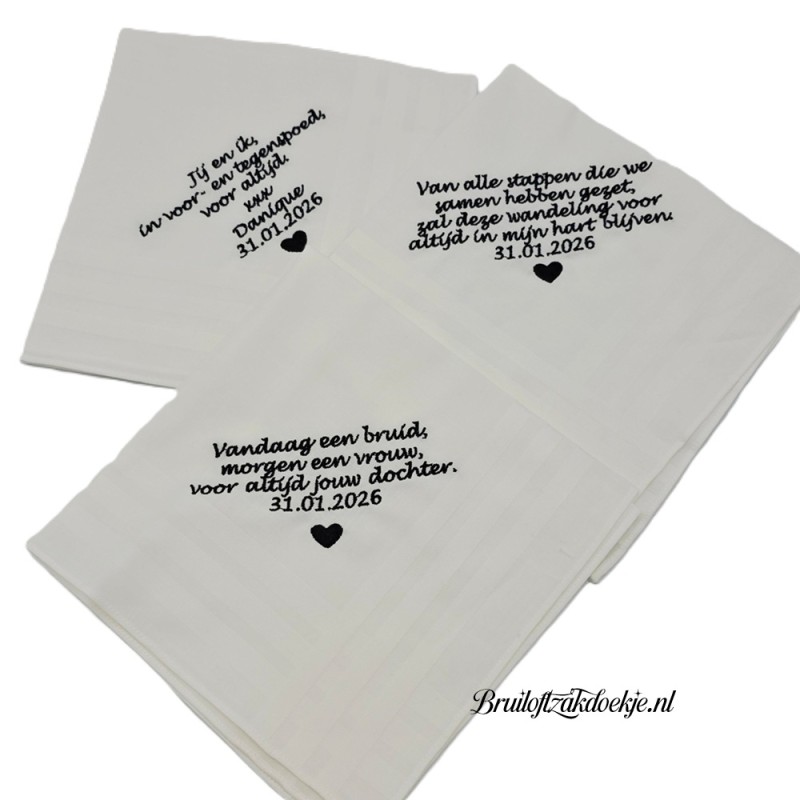 P.S. U kunt de regelgeving niet aangeven. Deze wordt automatisch passend gemaakt in de punt van de zakdoek.