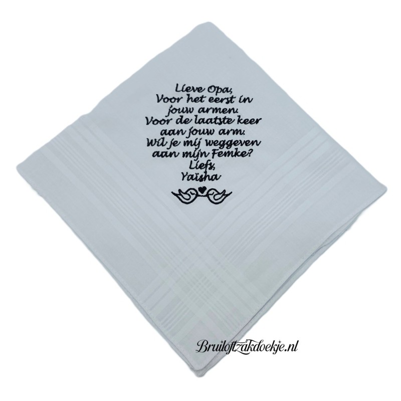 P.S. U kunt de regelgeving niet aangeven. Deze wordt automatisch passend gemaakt in de punt van de zakdoek.