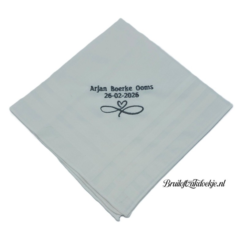 P.S. U kunt de regelgeving niet aangeven. Deze wordt automatisch passend gemaakt in de punt van de zakdoek.