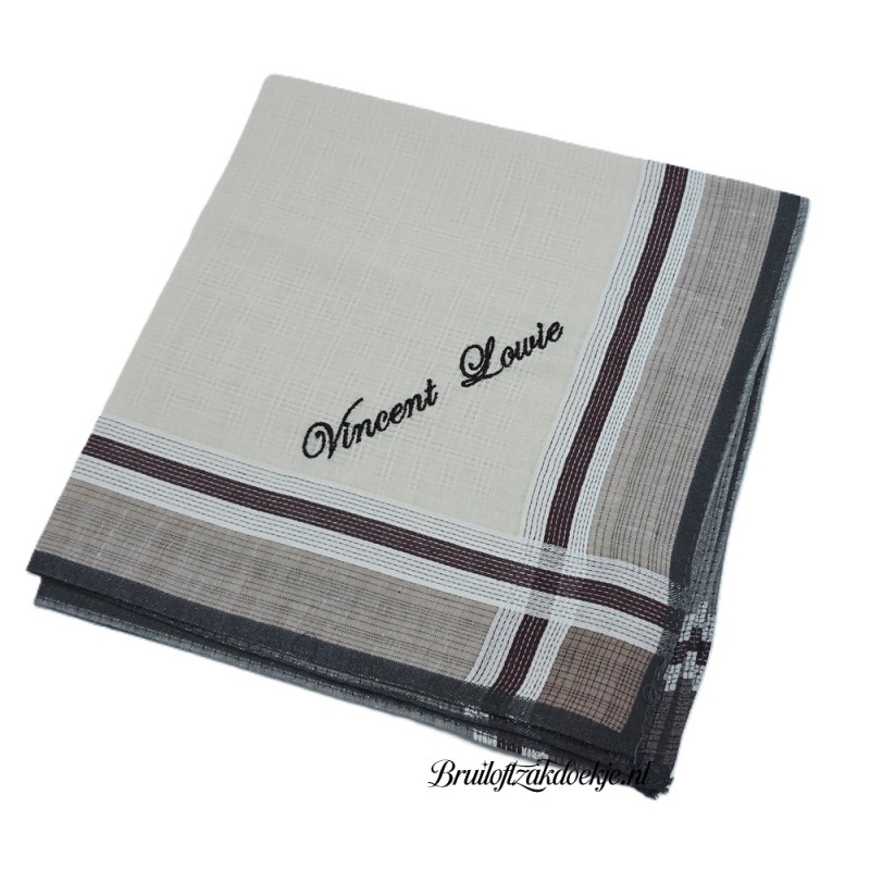 Herenzakdoek in de kleur midden ecru met bruin, beige en grijze rand