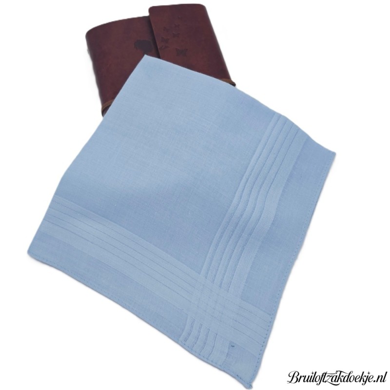 Herenzakdoek, met naam of tekst borduren. (1 brede en 4 smallere satijn binding strepen rondom)