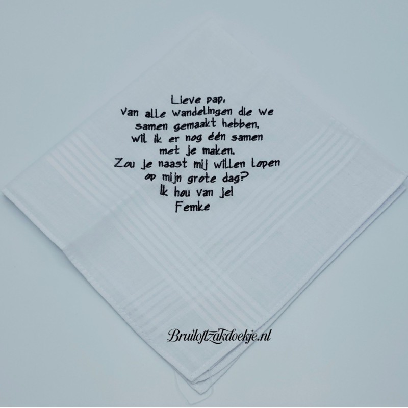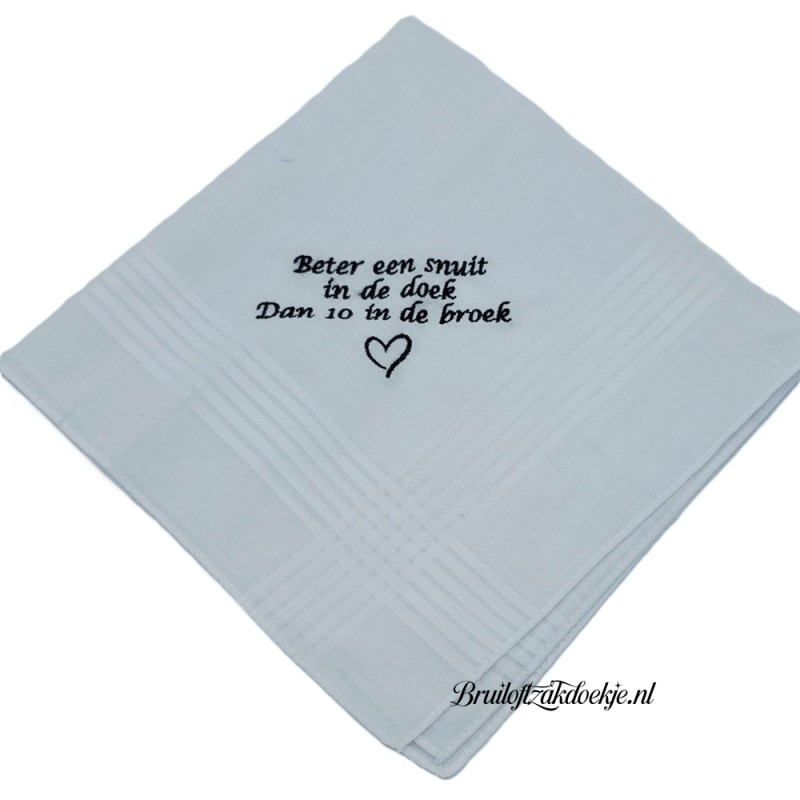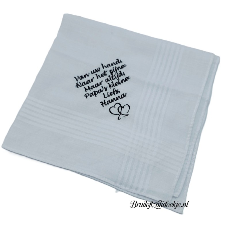 P.S. U kunt de regelgeving niet aangeven. Deze wordt automatisch passend gemaakt in de punt van de zakdoek.