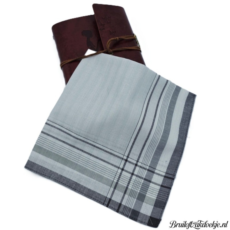 Heren zakdoek grijs met grijs tinten strepen rondom.