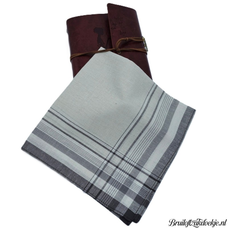 Heren zakdoek zandgrijs met grijs tinten strepen rondom.