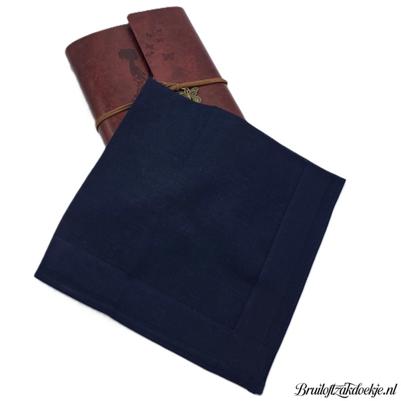 Heren zakdoek soft donker blauw egaal van kleur met 1 brede satijnbinding band rond om.