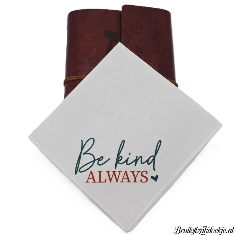Leuke zakdoek met Be kind always opdruk.