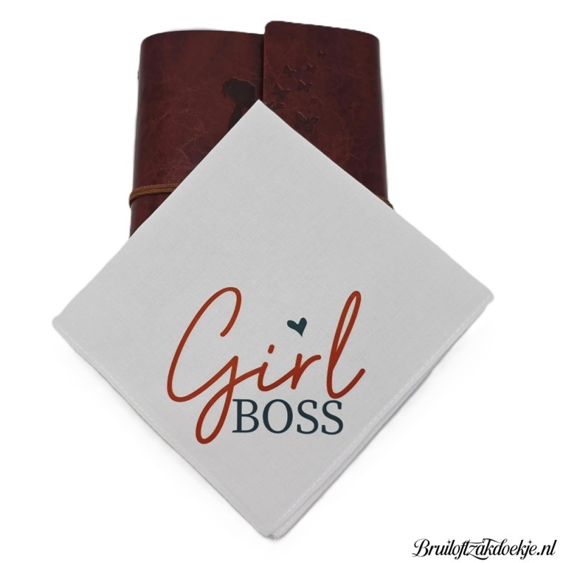 Leuke zakdoek met girl boss opdruk.