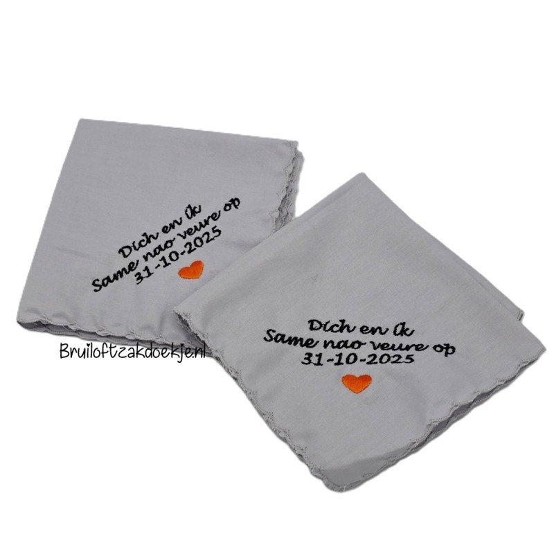 P.S. U kunt de regelgeving niet aangeven. Deze wordt automatisch passend gemaakt in de punt van de zakdoek.
