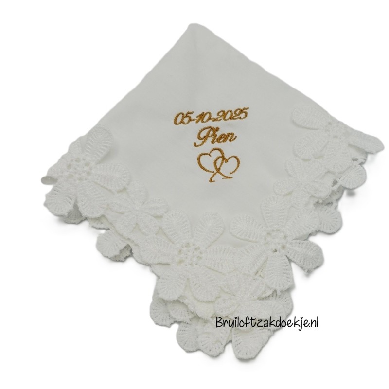 Deze luxe bruidszakdoek is ongeveer 30 x 30 cm met kant.