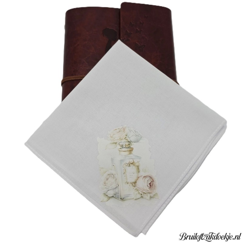 Leuke zakdoek met een fles parfum opdruk.