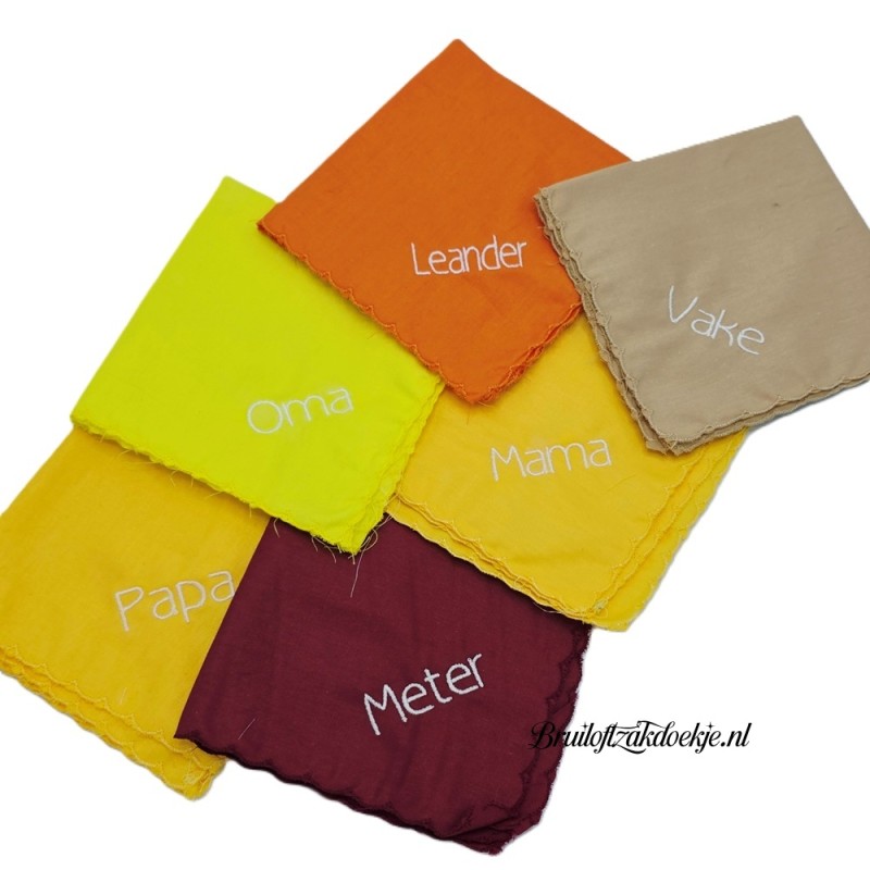Van elke kleur zakdoek zijn er maar 2 of 5 gemaakt dus let op de voorraad kunt u een kleur niet kiezen dan zijn deze op.