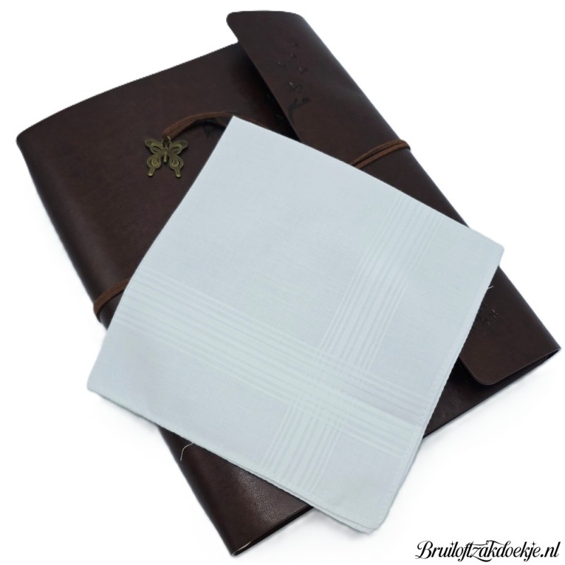 Zakdoek in de kleur wit klassiek model, met 9 strepen in satijnbinding rondom.