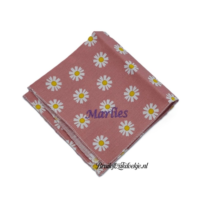 Zakdoek met digitaal print met witte bloemen